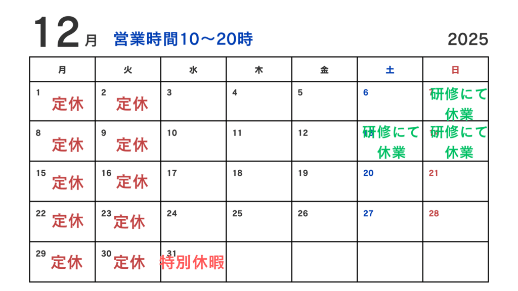 年末年始の特別休暇は12月31日(水)~2026年1月4日(日)まで♬